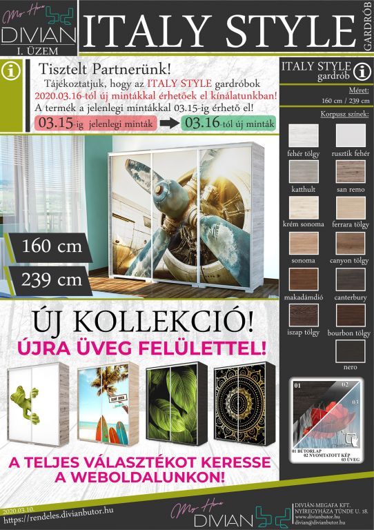ITALY STYLE tolóajtós gardrób