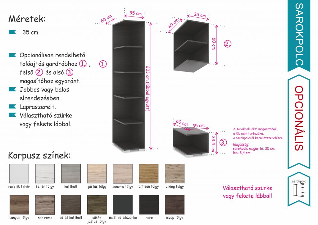 Tolóajtós gardrób sarokpolc